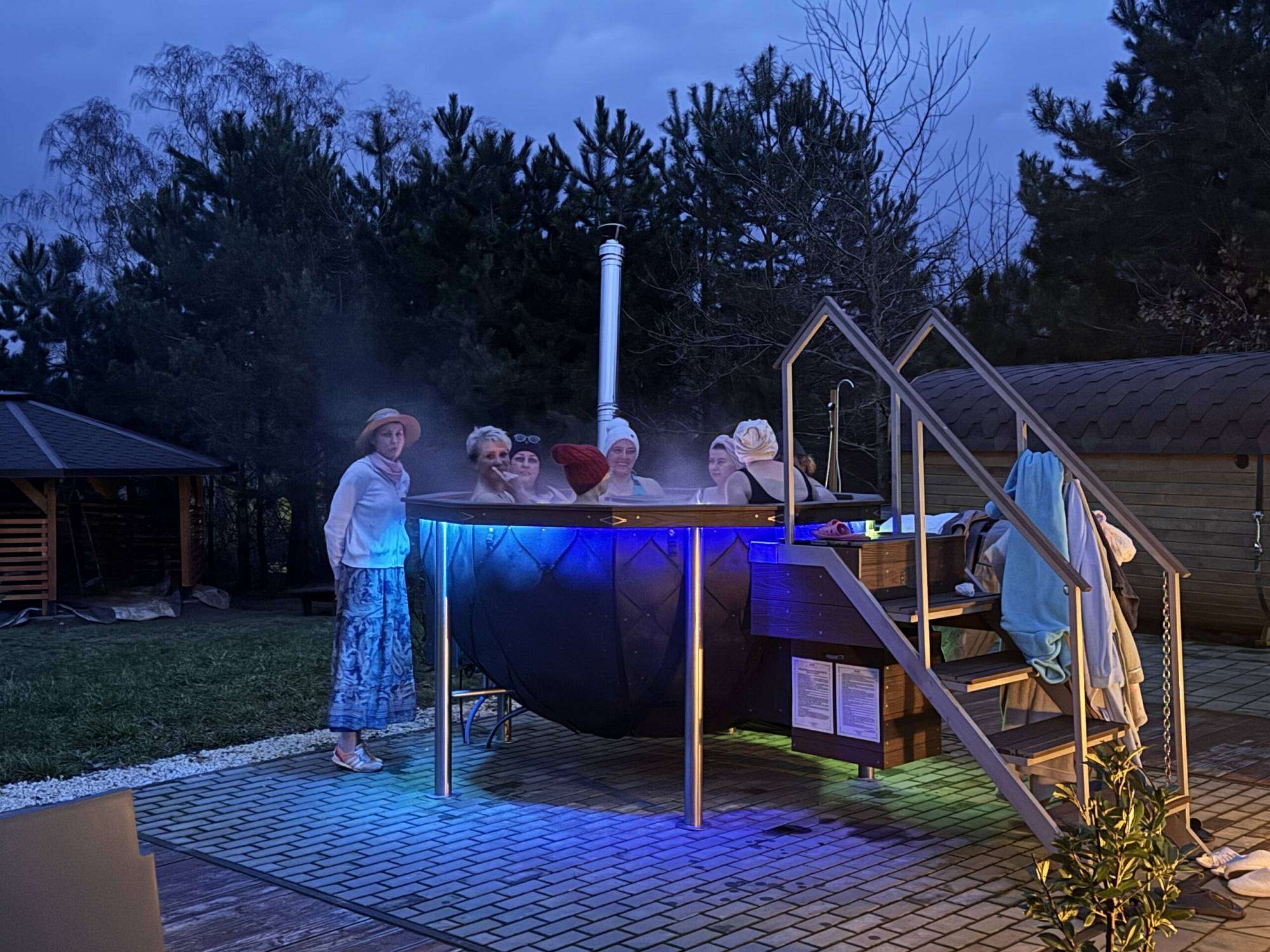 Ogrodowe SPA — uzupełnienie każdego pobytu. Ciepła woda, para, cisza. Cortisol opada sam z siebie.