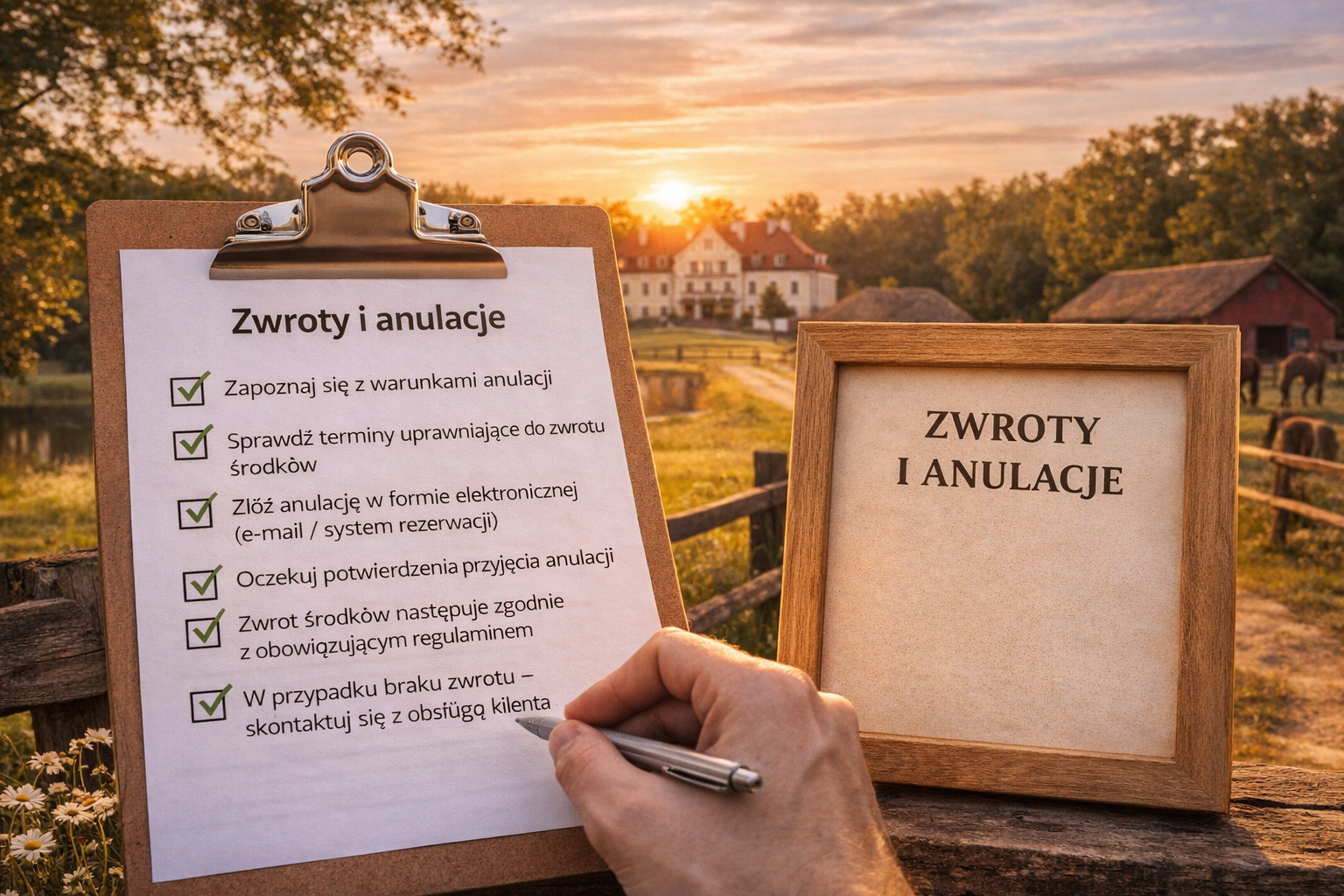 Niniejszy dokument określa zasady anulacji rezerwacji oraz zwrotów środków dotyczących usług noclegowych i pobytowych oferowanych przez Pałac pod Bocianim Gniazdem w Runowie.